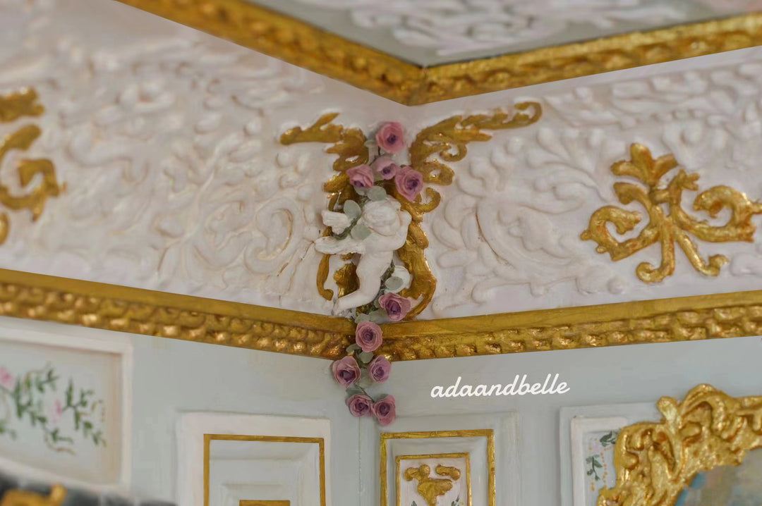 Fiona Zhou is a remarkably talented and passionate student who has immersed herself in the intricate world of 18th-century French interior design through our miniature courses. She joined both the Rococo Salon Course and the Rococo Furniture Course, where her creativity and dedication truly shone. Fiona has crafted an exquisite 1:12 scale Rococo salon, a masterpiece that captures the opulence and elegance of the era. Her salon is a testament to her meticulous attention to detail, featuring luxurious embellishments, intricate golden ornaments, and a harmonious blend of pastel tones that evoke the quintessential Rococo aesthetic.