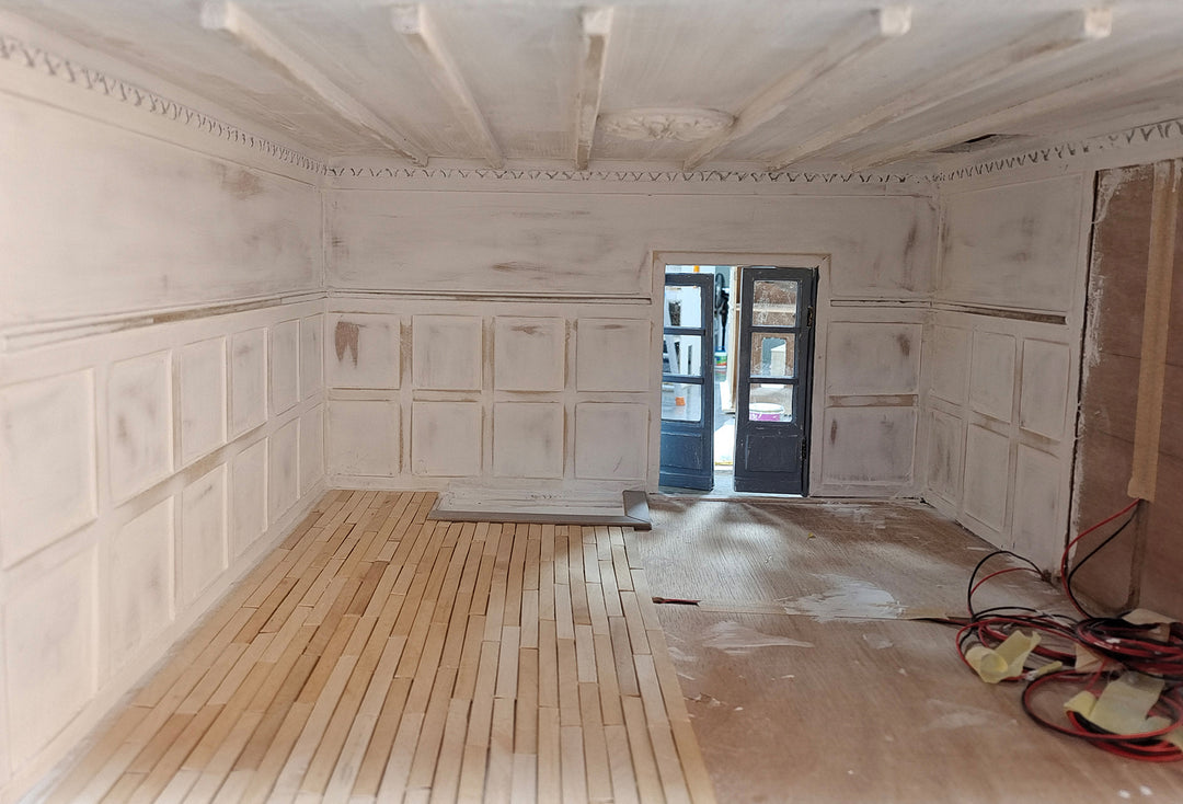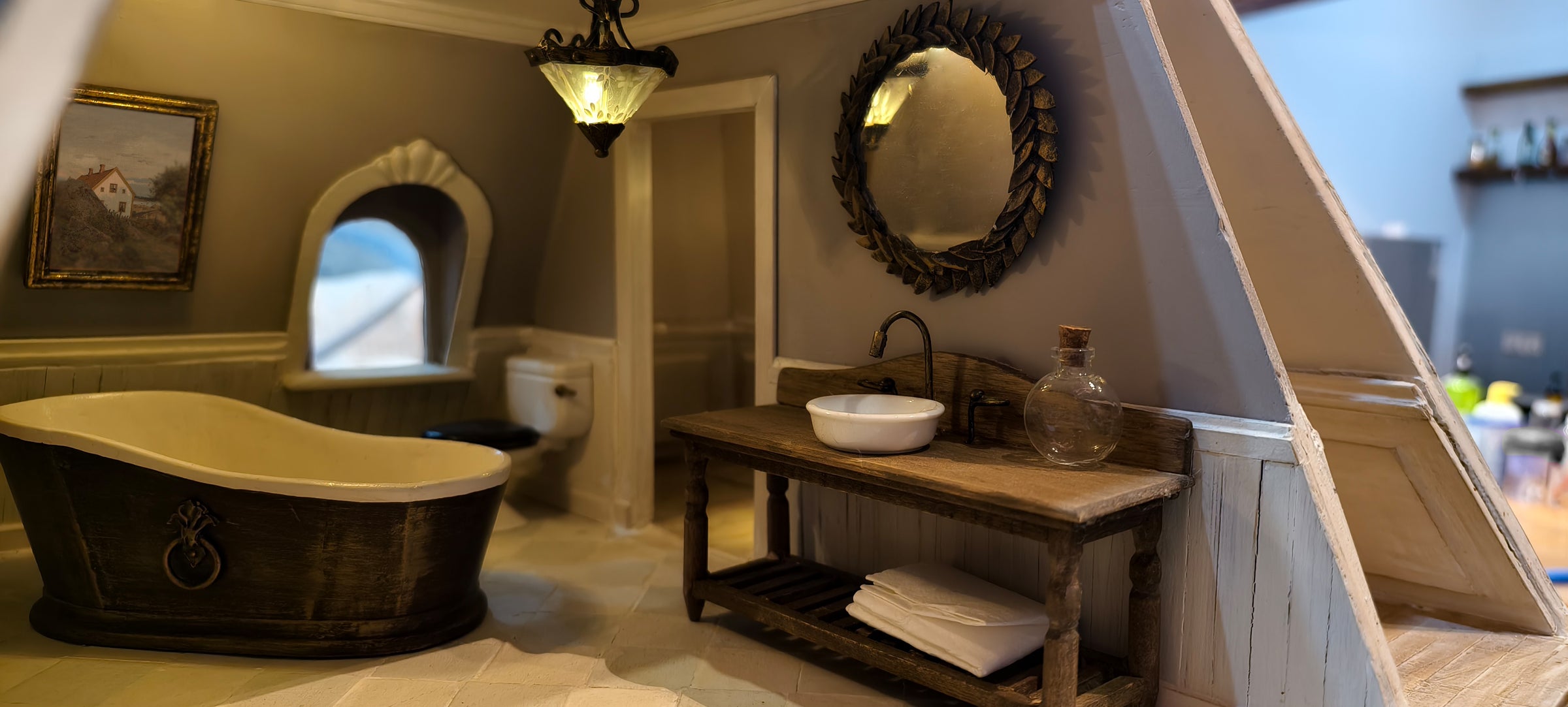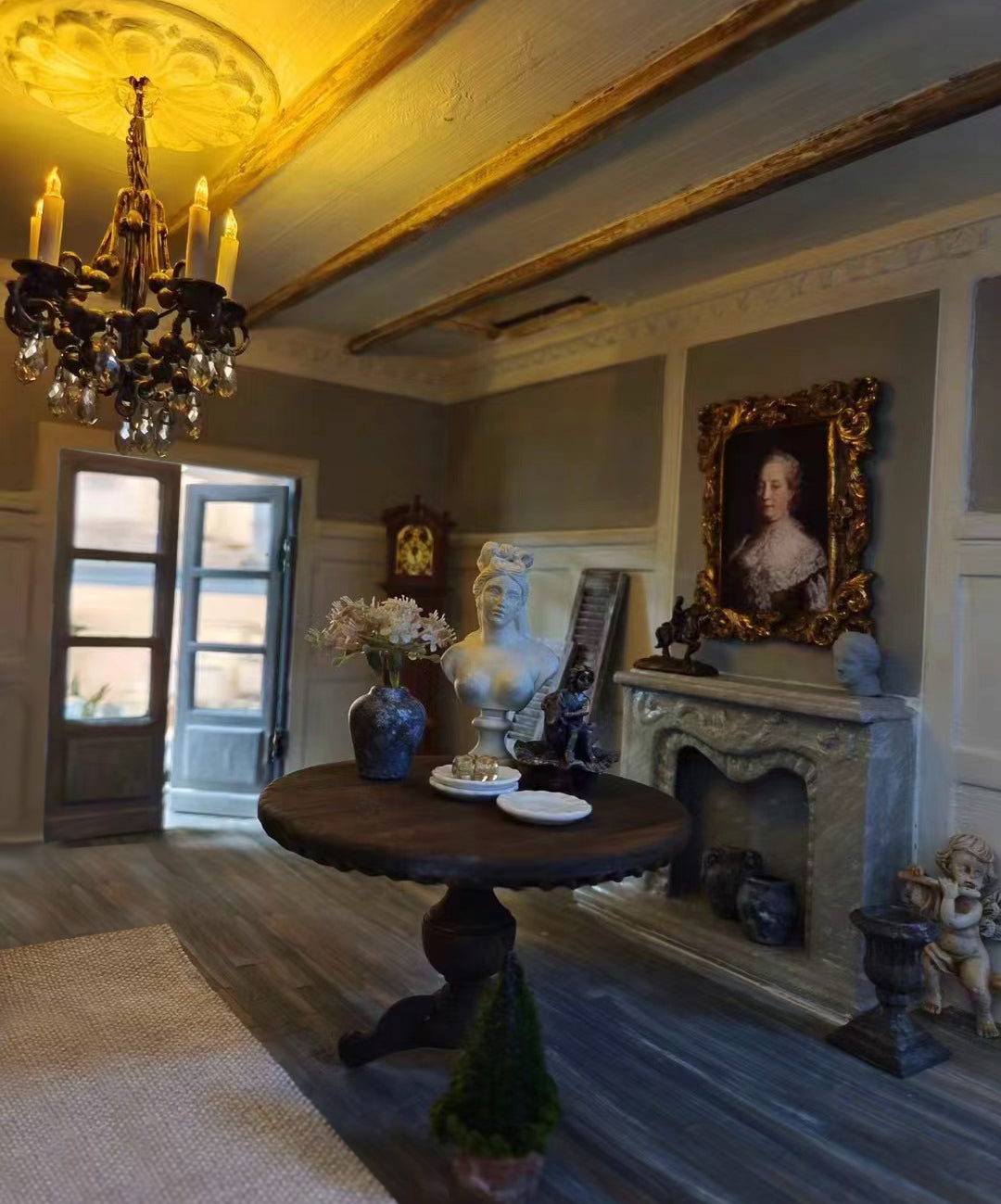 Lighting plays a crucial role in setting the mood of your dollhouse. You will create two rustic vintage chandeliers for the living room and bedroom, along with a ceiling lamp and two sconces for the third-floor bathroom. The living room will feature additional sconces flanking the mirror above the fireplace, providing a warm glow that invites relaxation and conversation. This section of the course will cover: