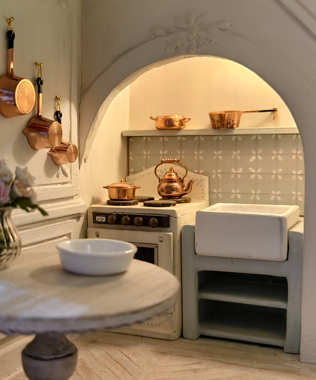 As you step inside your French cottage, you will find a fully furnished interior that exudes shabby chic charm and rustic French brocante style. Each piece of furniture will be crafted from scratch, allowing you to explore your creativity and develop your skills in miniature woodworking, upholstery, and painting.
