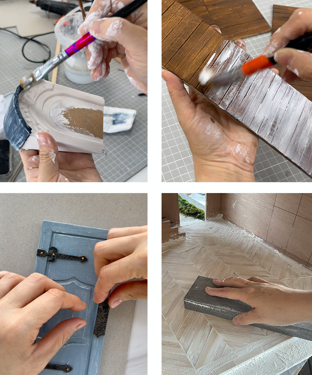 Your dollhouse will feature a charming facade designed in pure French country style, characterized by soft pastel colors, weathered textures, and rustic accents. You will learn how to select and apply paint techniques that mimic the look of aged materials and distressed finishes, giving your dollhouse an authentic vintage feel.