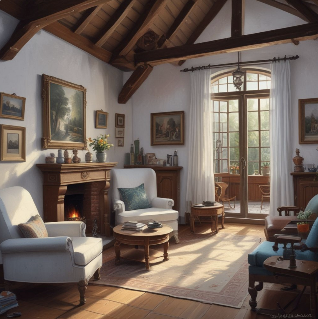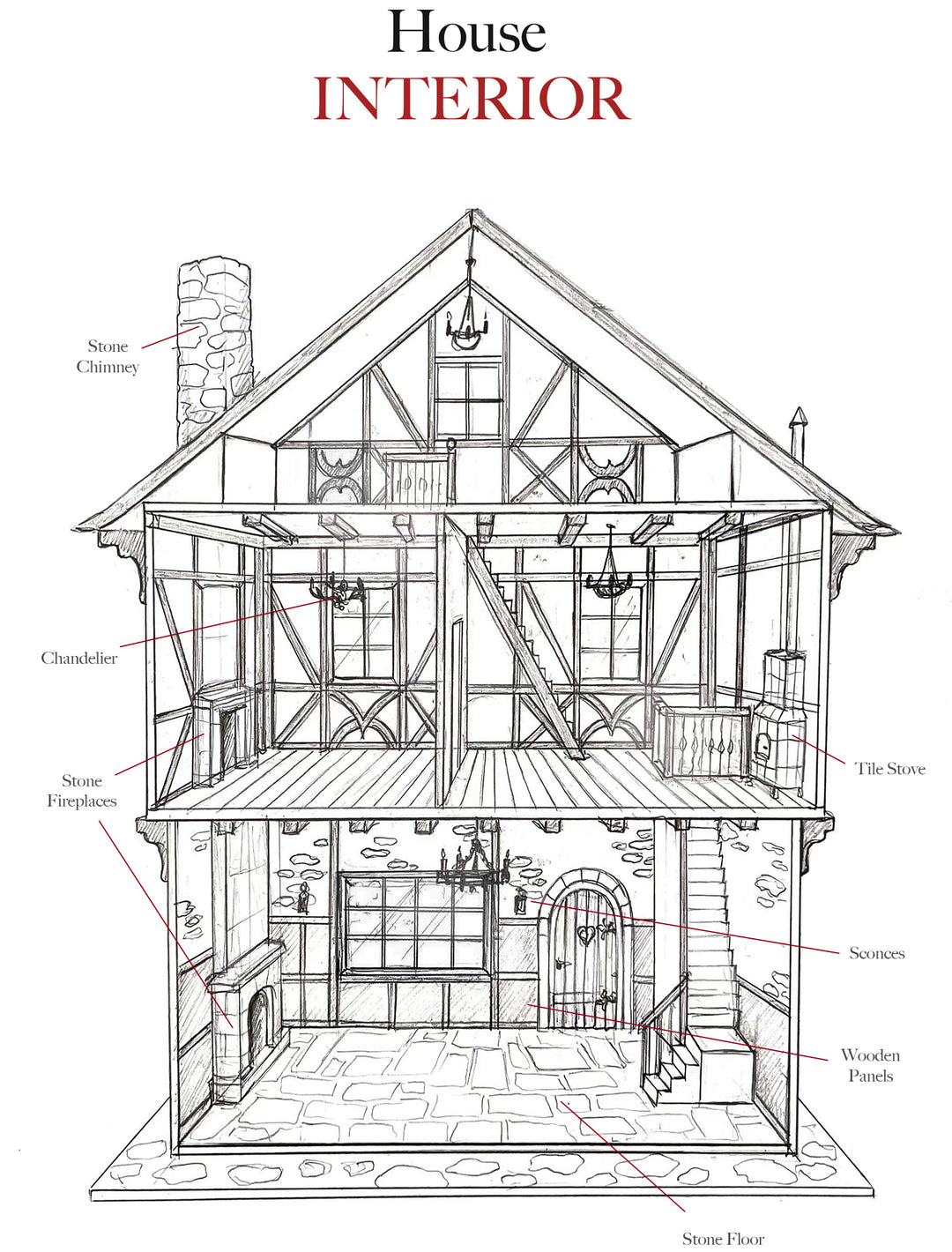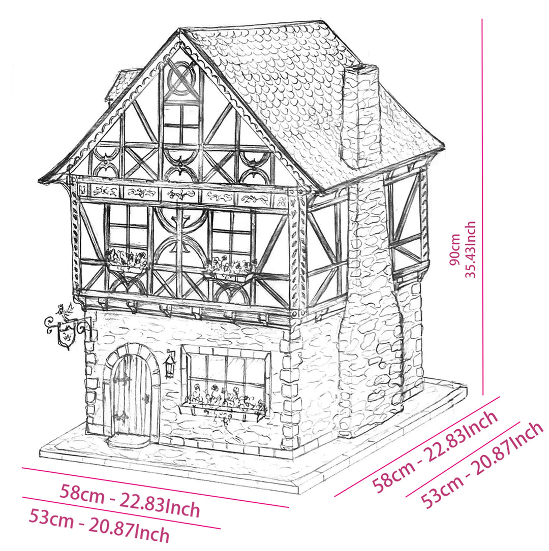The interior of your dollhouse will reflect the traditional half-timbered style, featuring rustic wooden wall paneling and exposed timbers that evoke a sense of warmth and history.