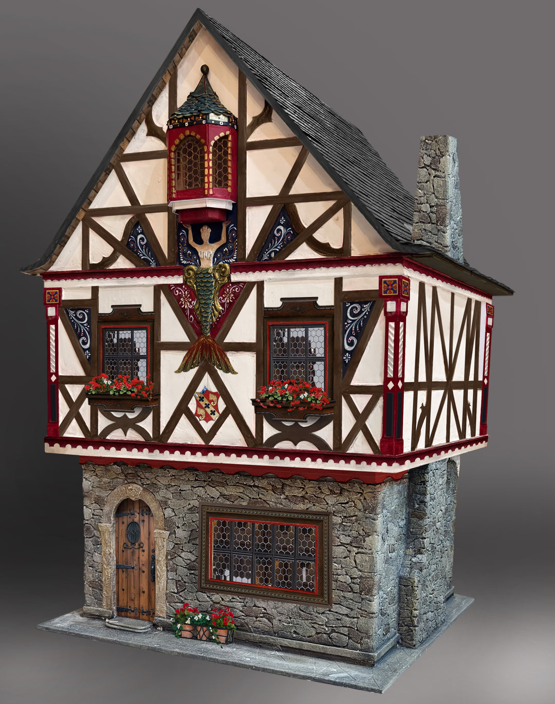 As you progress, the upper part of the dollhouse will be crafted to imitate the distinctive half-timbered style that is a hallmark of German architecture. This includes hand-painting intricate details on the facade, which adds a layer of charm and authenticity to your creation.