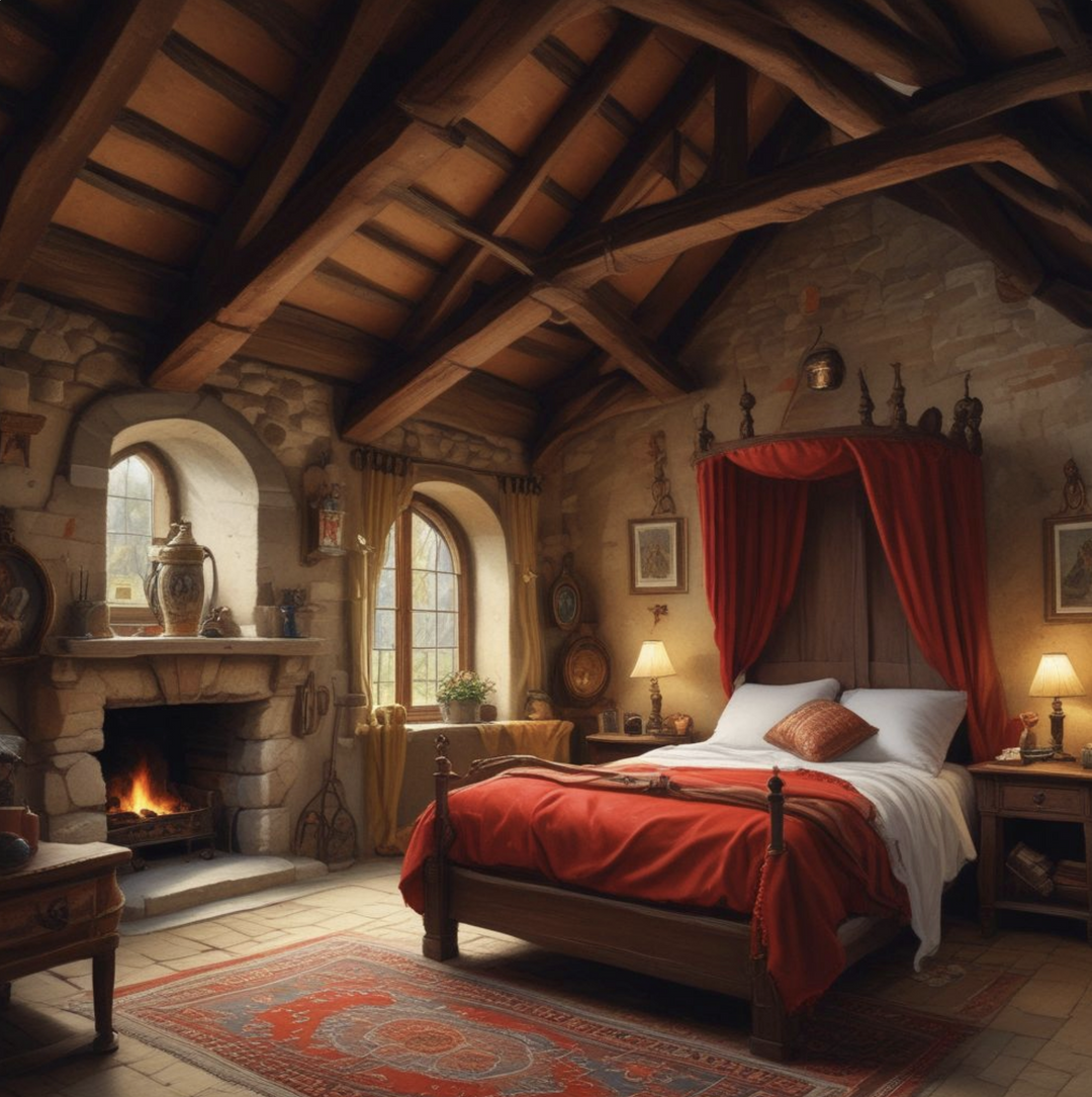 As you move to the second and third floors, the theme will continue with white plastered walls and exposed beams, characteristic of medieval homes. Students will have the freedom to decorate the interior in a style of their choosing—whether contemporary or purely medieval—allowing for personal expression and creativity.