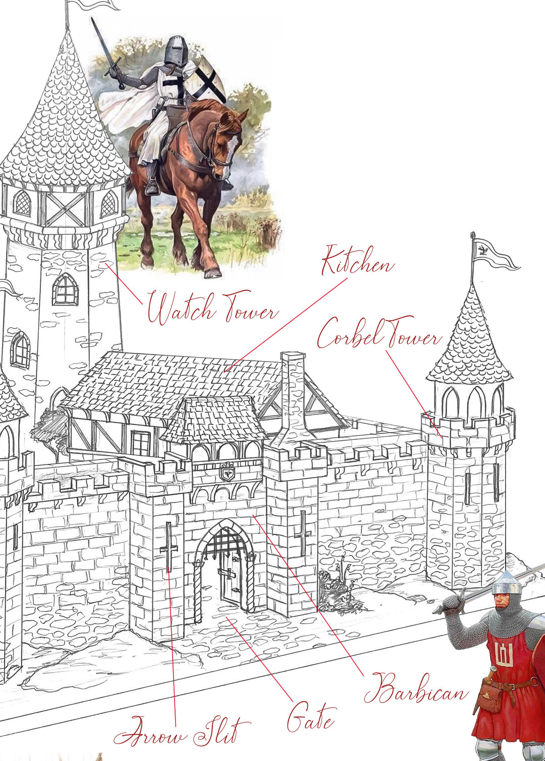 This impressive castle includes all the features one would expect from a real castle of this era.
