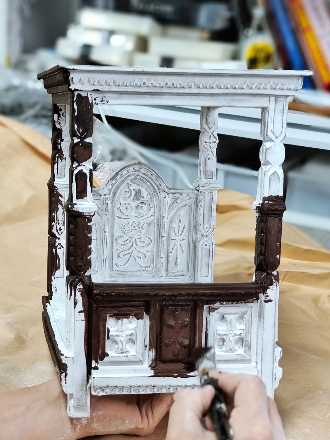 Our materials packages include all the necessary components to complete the course projects. These included the wooden parts of miniature furniture, accessories, paints, and specialized tools.