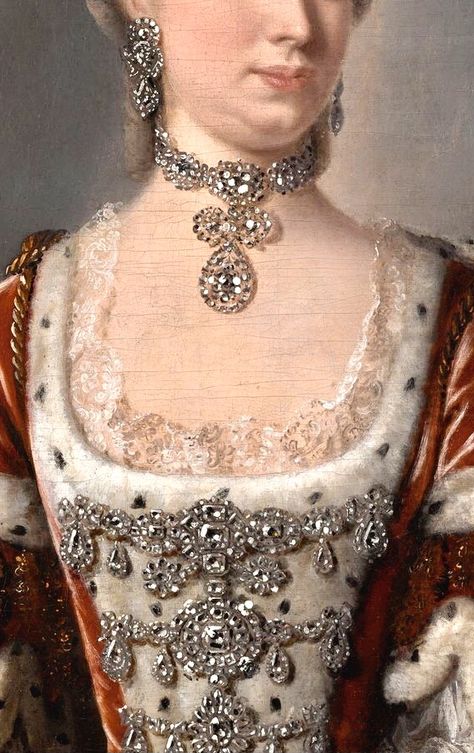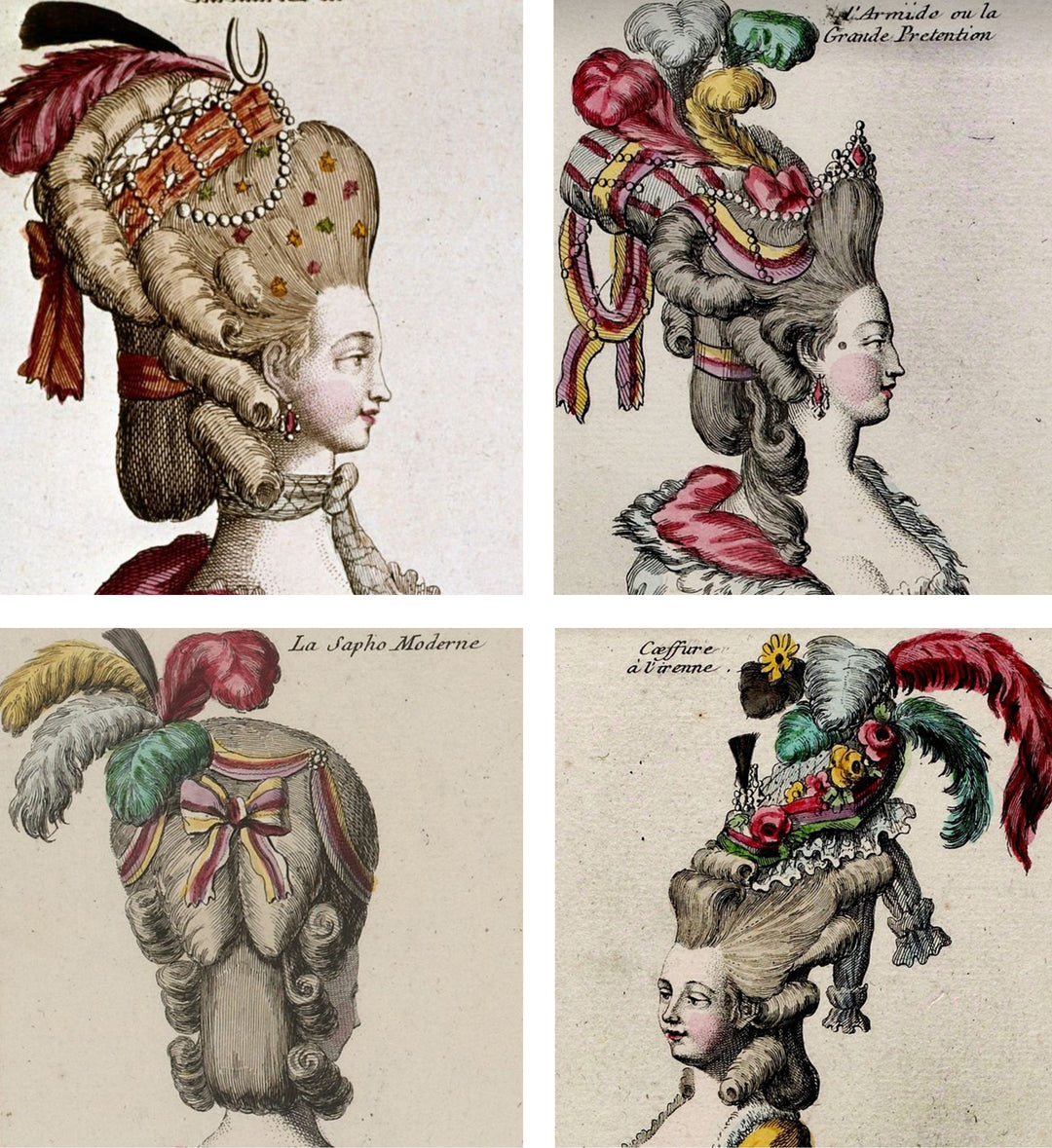 The Queen was also famous for her extravagant hairstyles, which could reach impressive heights and were adorned with flowers, feathers, and even miniature objects.