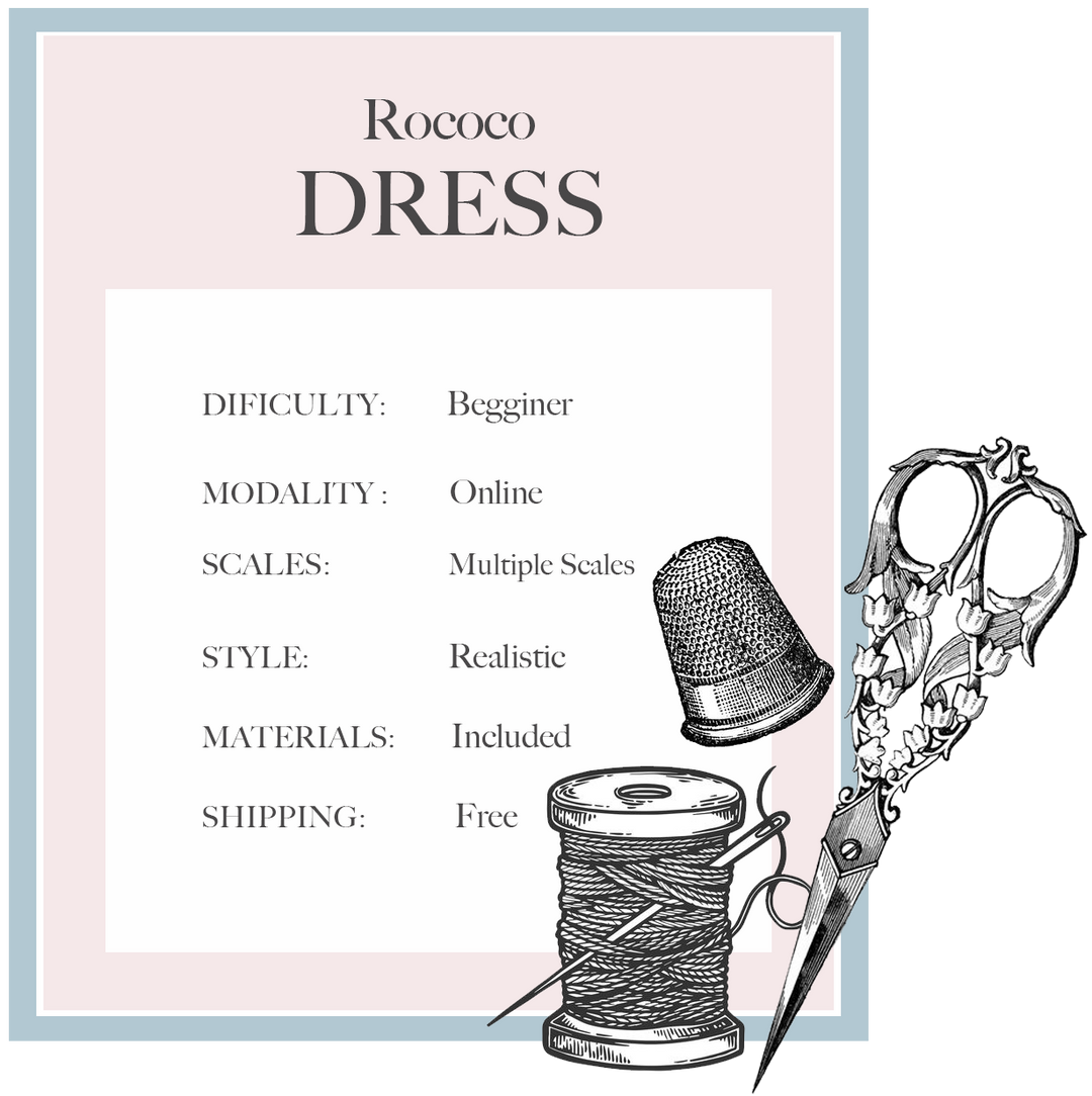 This course is ideal for miniature enthusiasts, doll collectors, fashion design students and anyone with a passion for historical fashion. Whether you are a beginner looking to learn the basics or an experienced crafter seeking to expand your skills, the "Rococo Dress" course offers a rich and rewarding experience.