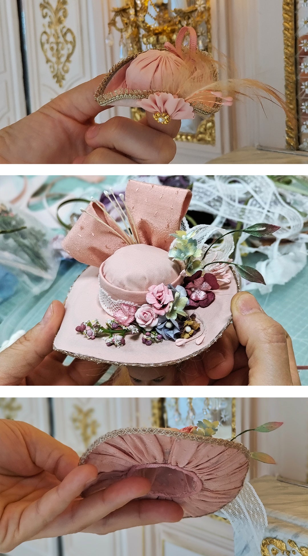 In our Rococo dress course, students will explore the art of creating miniature hats inspired by the extravagant styles of the 18th century. These tiny masterpieces reflect the intricate craftsmanship and flamboyant aesthetics of the Rococo period. Participants will learn to select appropriate materials, such as silk, lace, and feathers, to replicate the opulence of the era.