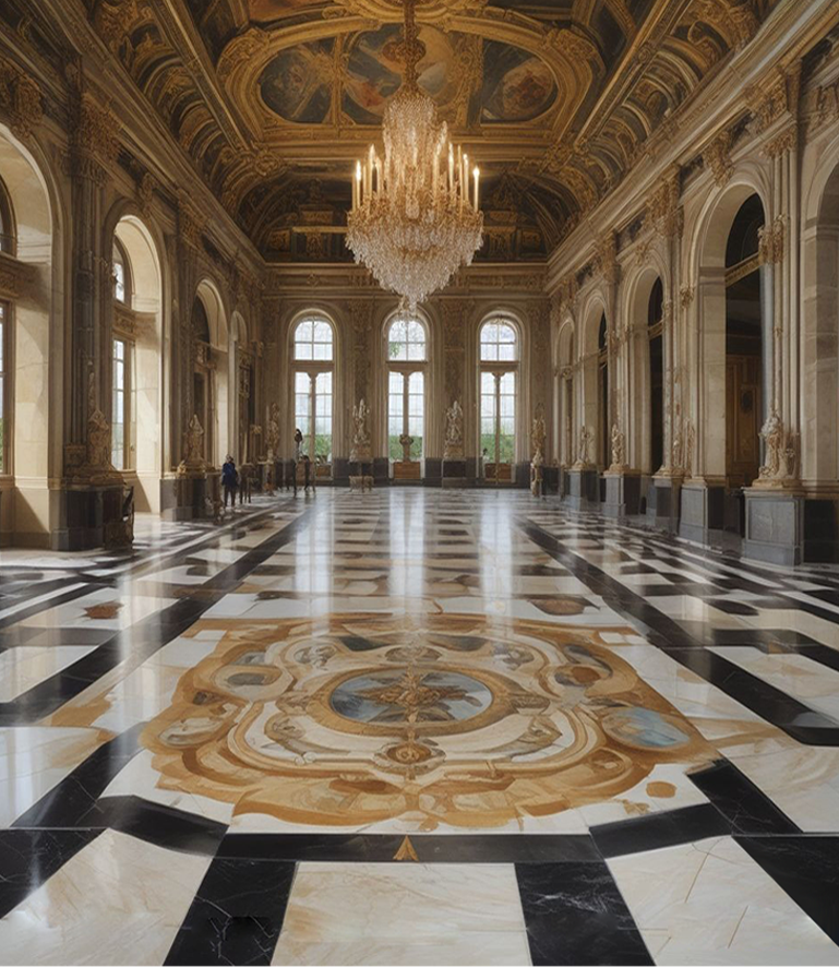 This exquisite Rococo-inspired salon is available in two distinct scales to suit your specific needs and preferences.