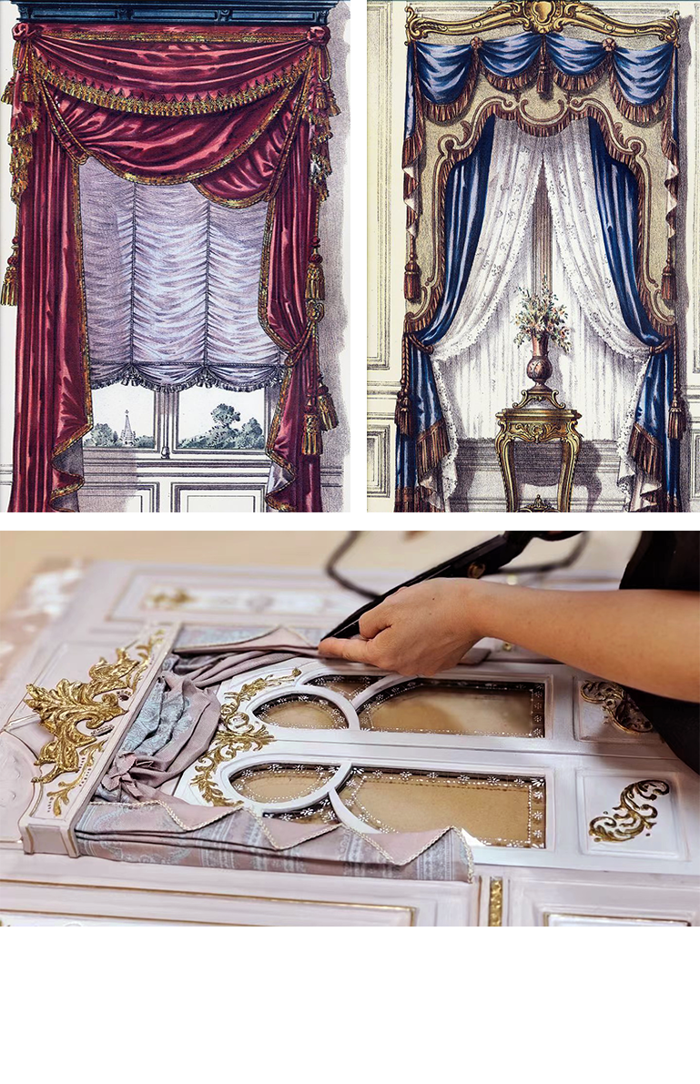 Once the curtain design is finalized, the instructor will guide you through the process of properly draping the fabric to achieve the desired fullness and flow. Special attention will be paid to the placement and application of any embellishments, such as tassels, fringes, or embroidered details, which were hallmarks of Rococo interior design.