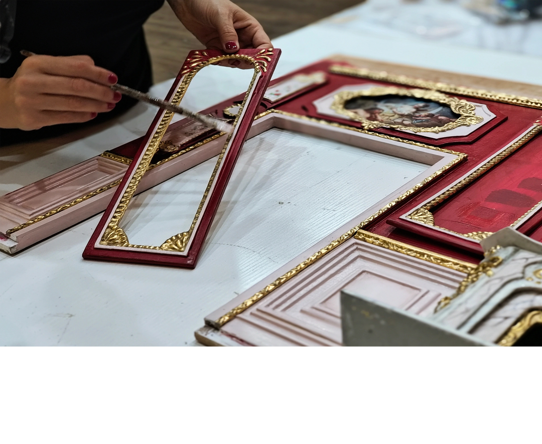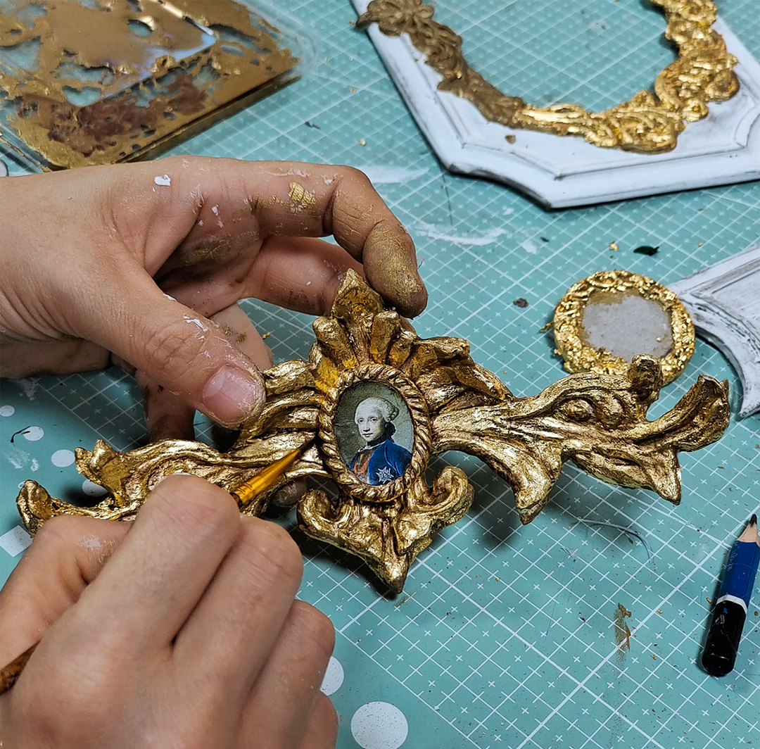 Our expert instructor, with her deep knowledge and extensive experience in classic design and miniature making, will serve as your guide throughout this journey. She will impart specialized techniques and share invaluable insights, empowering you to master the delicate art of crafting miniature Rococo ornaments, luxurious mirrors, and gilded architectural details.