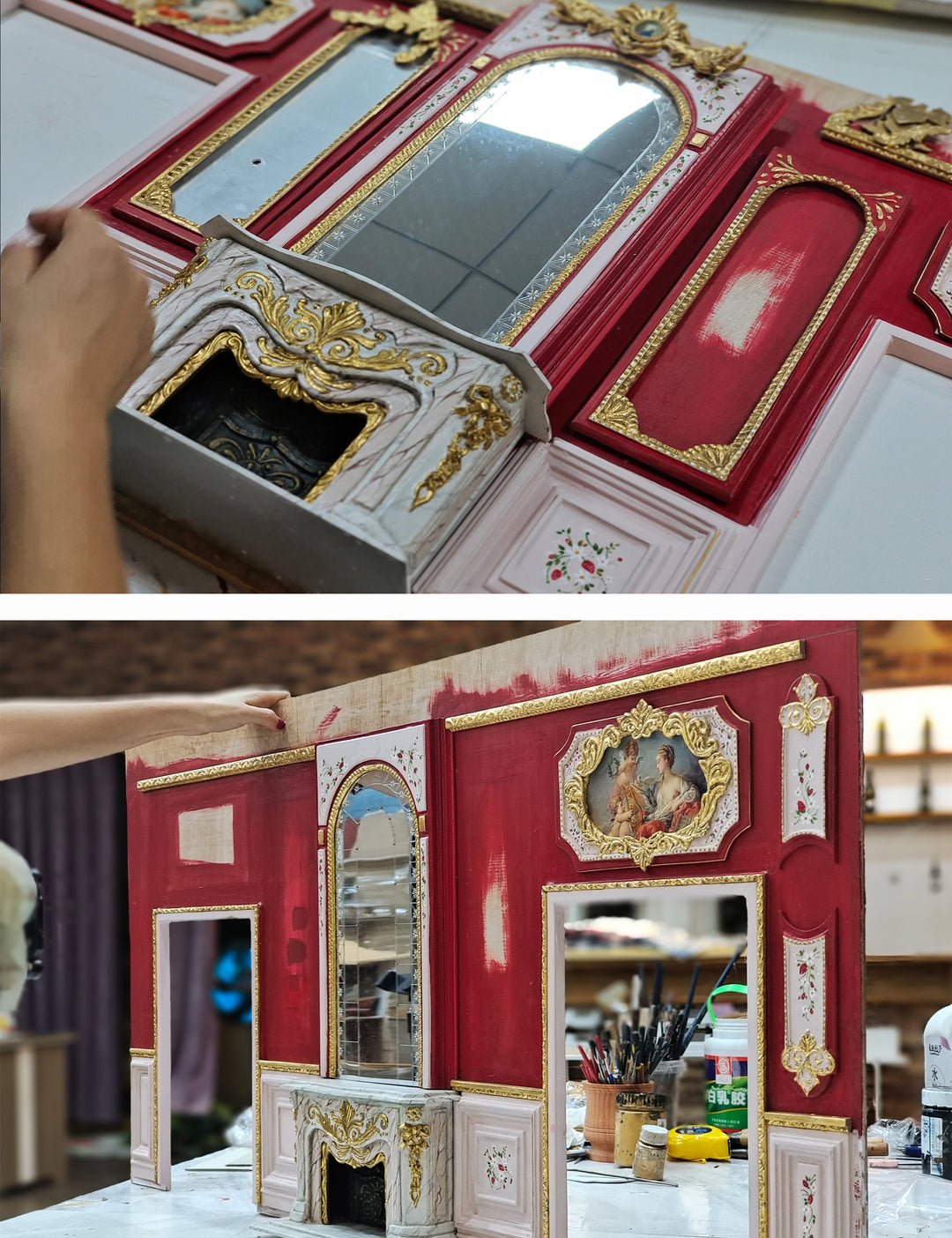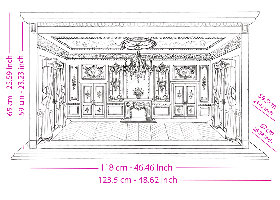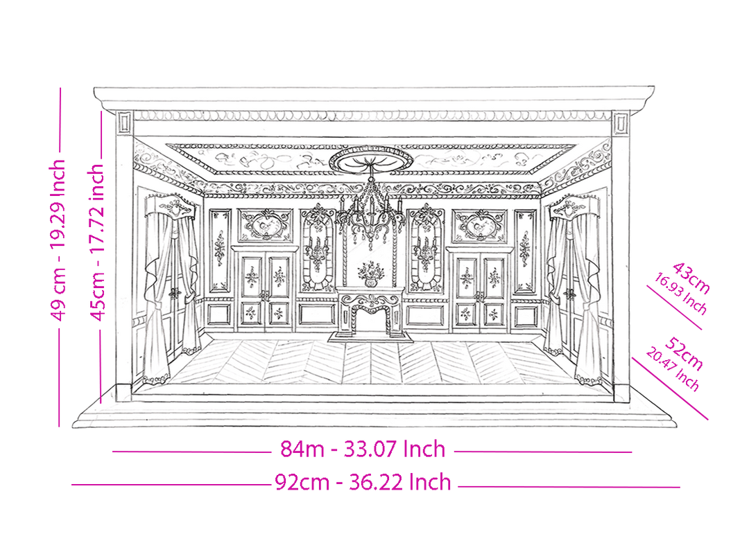 From the intricate moldings and decorative flourishes adorning the walls to the ornate and visually captivating furnishings, every element of your miniature salon will display the grandeur and opulence synonymous with the Rococo style.
