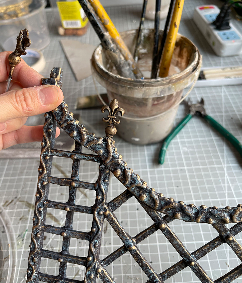 The beautiful ornate golden arms of the this chandelier and sconces will be made using a mixture of techniques.